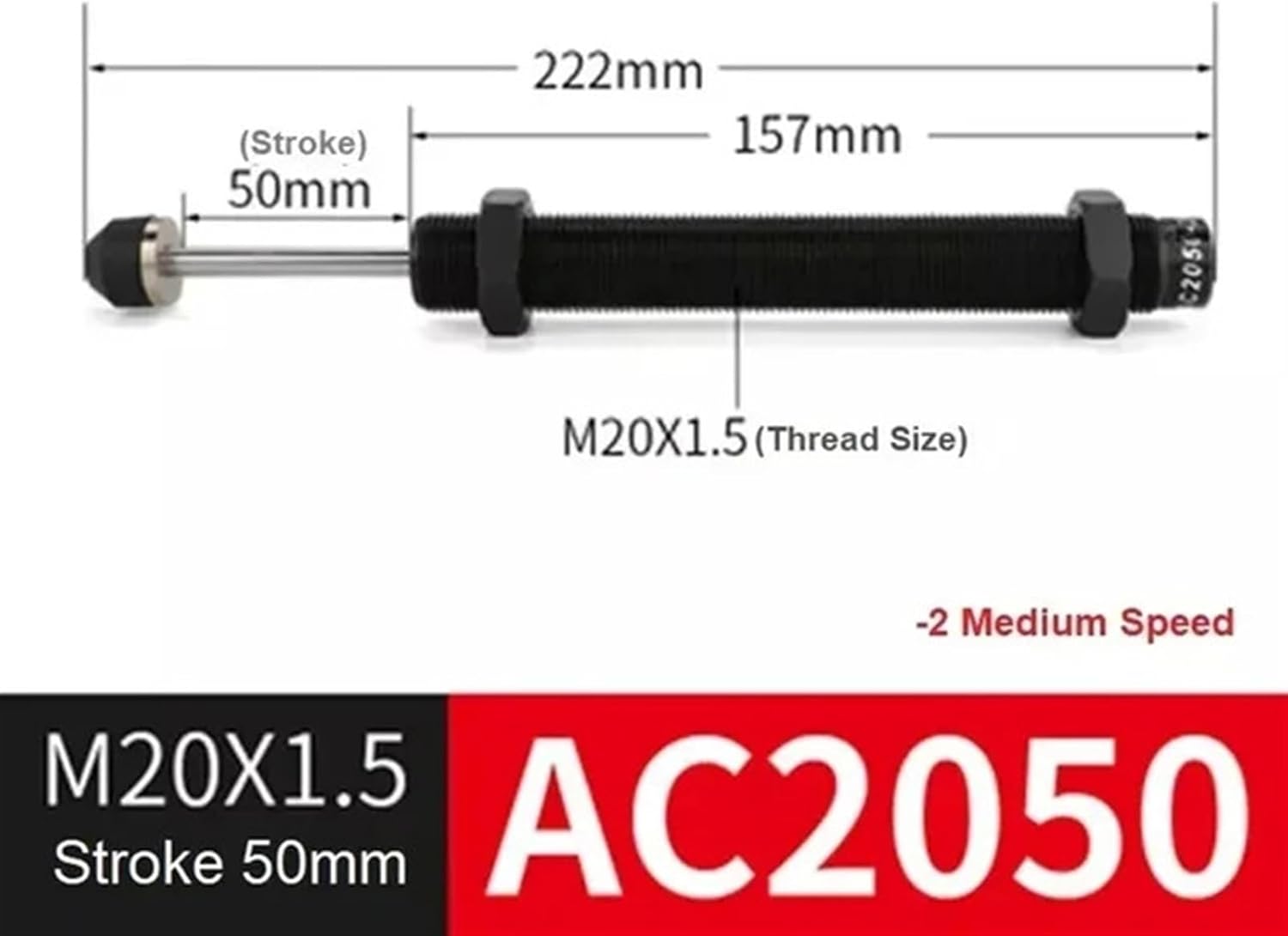 Pressure DampersSpecifications:Part name: Hydraulic shock absorber, hydraulic buffer damperModel(optional): AC0806, AC1008, AC1210, AC1410, AC1412, AC1416, AC1420, AC1425, AC2016, AC2020, AC2025, AC2030, AC2050, AC2525, AC2530, AC2540, AC2550, AC2580, AC3660, for HR(SR)15, for HR(SR)30, for HR(SR)60, for HR(SR) 80, for HR(SR)100, AD1410, AD1412, AD1416, AD1420, AD1425, AD2016, AD2020, AD2025, AD2030, AD2050, AD2525, AD2530, AD2540, AD2550, AD2580, AD3625, AD3650Size: As shownColor: BlackMain body material: Carbon steelPiston rod material: Stainless steelfor Impact speed: Medium speed(default)Load: 8-10kgApplicable temperature:-10 to+80Quantity: 1pcsPackage contents:1 x Hydraulic shock absorber