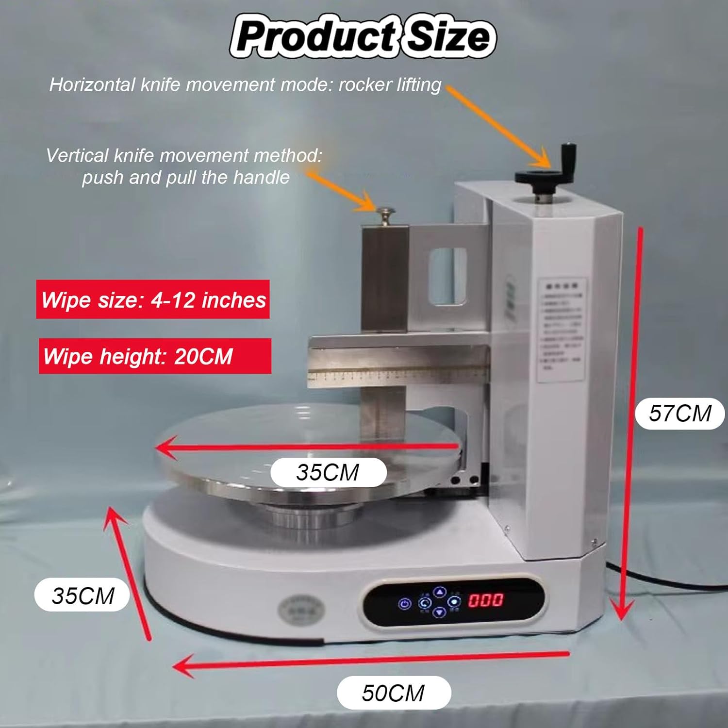 Specifications: Name: Automatic cake cream spreader Power: 200W Turntable diameter: 35 cm/13.8 inch Cake diameter: 4-12 inches Cake height: 0-20 cm/0-7.87 inch Size: 50*35*57cm