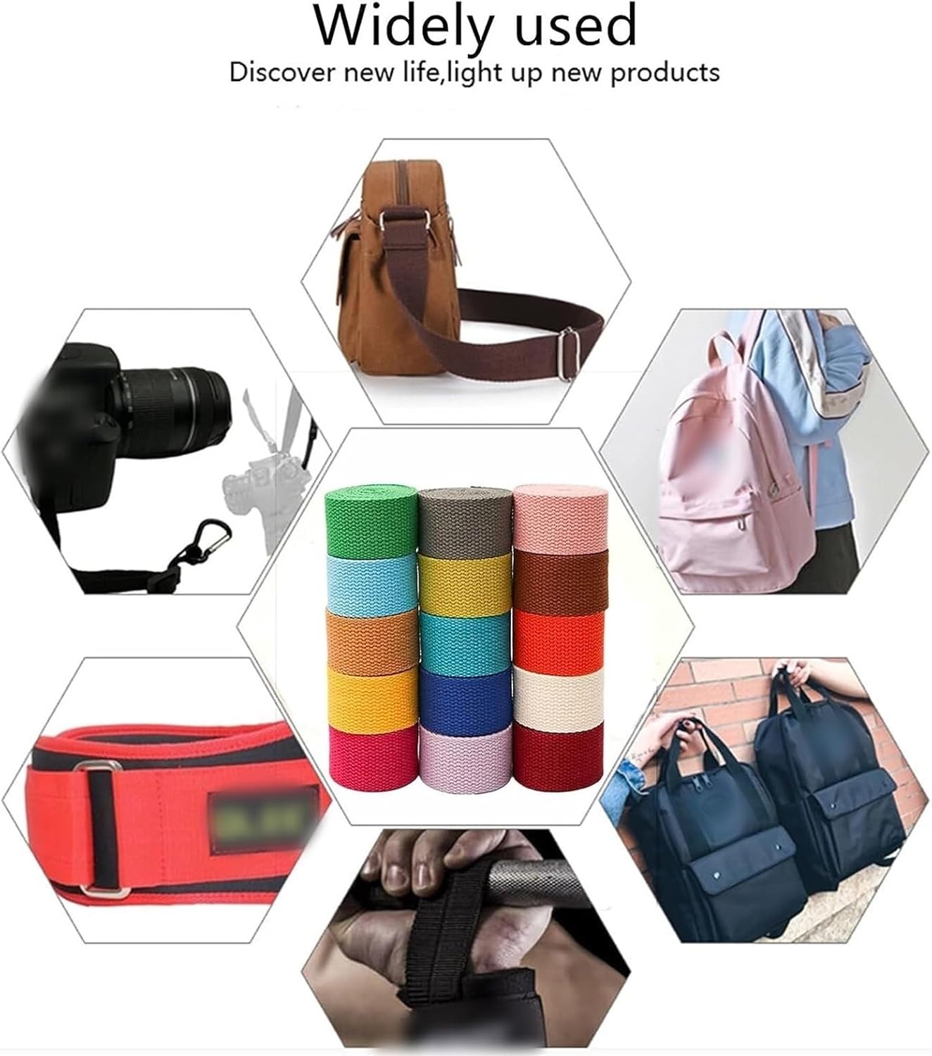 20-50mm wide webbing tapeMaterial: Polyester CottonWidth: 2cm(3/4") / 2.5cm(1")/ 3.8cm (1 1/2") / 5cm(2")Length: 10Yards (9.1m) Thick: about 1.2mmPackage including:1 roll webbingWarm Notice:1. Please allow a little error on the size due to manual measurement. 2. The color might exist slight difference due to different displays.