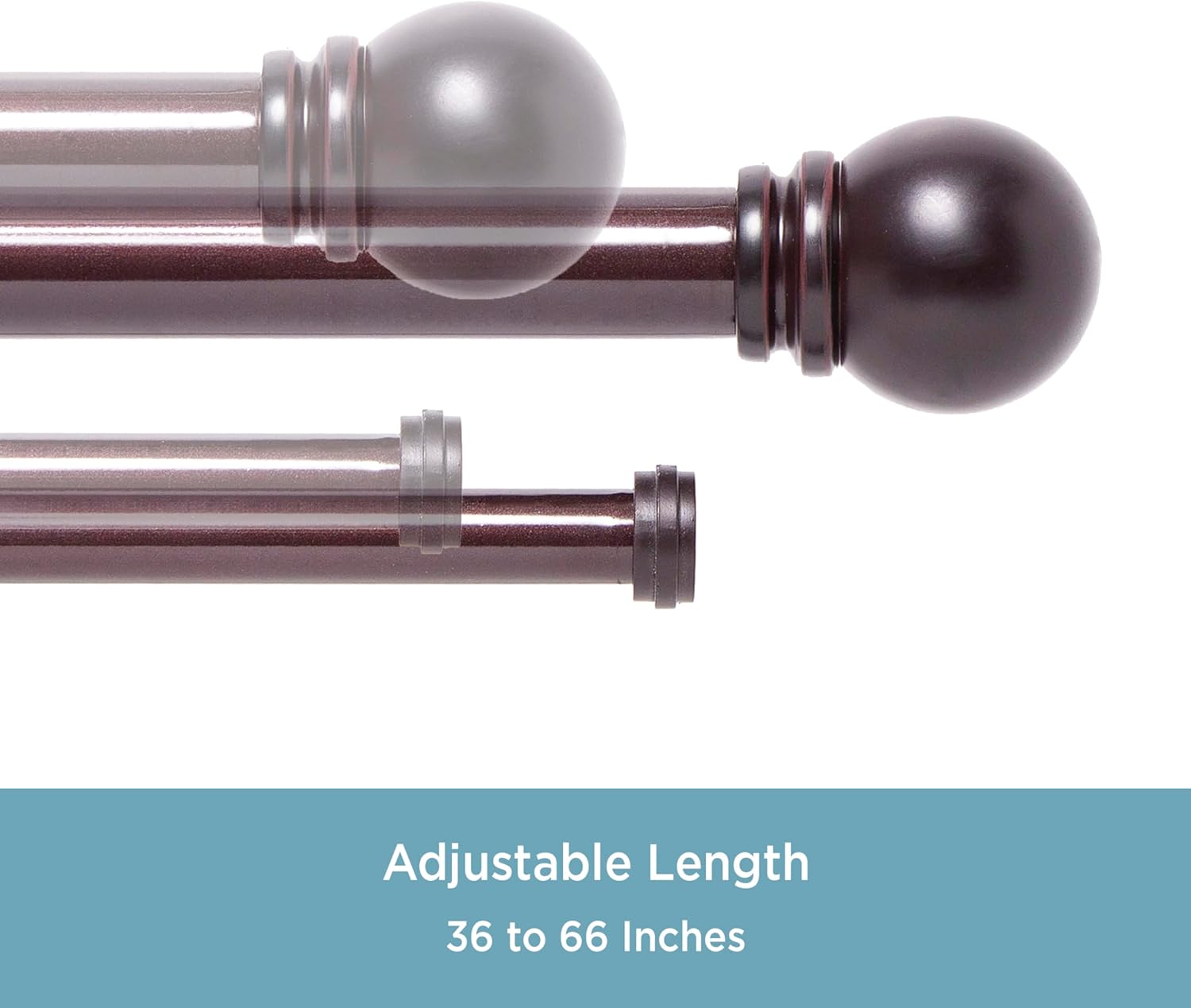 Product Description Create a layered look with the Hamlin double curtain rod by Kenney. The double metal rods have a Weathered Brown finish with matching decorative ball finials. The set includes a 1-inch diameter front rod and 5/8-Inch diameter back rod that adjust to fit your window. The font rod projects 5 ⅛-inches from the wall and the rear 3-inches. The double mounting brackets have an attractive closed-loop euro design. The Hamlin double curtain rod is recommended for medium and heavy weight curtains. Layering your curtains enhances privacy and provides more insulation year-round. The 1 inch rod diameter and larger finials make a bold fashion statement. Great for larger rooms and windows. To create a contemporary look, use with grommet curtains. Mounting hardware and instructions are included. Set Contains: Double Curtain Rod and Mounting Hardware